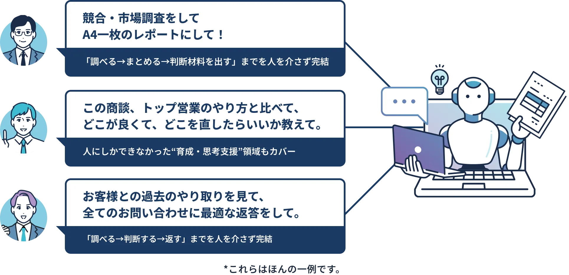 営業向けには、具体的にどんなエージェント(機能)があるのですか?