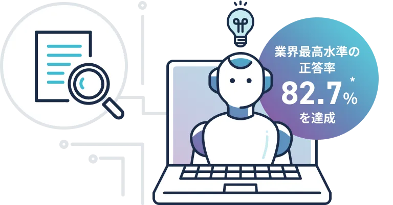 企業内のデータベースから必要な情報を高精度で検索・抽出し、企業固有データに対する正答率は82.7%を実現。