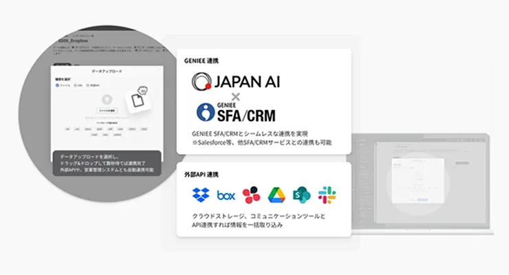 Microsoft Officeやキントーン等もAI OMNI AGENTひとつで自動化を実現。コストも抑えられます。 - SFA/CRMとの連携でもっと便利に